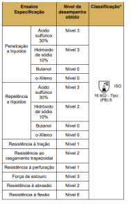• Avental tipo (PB) “6” – vestimenta de proteção parcial