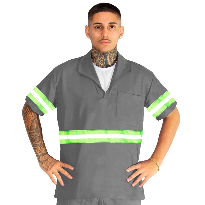 Camisa Brim Modelo Gola Italiana com Faixa Refletiva Manga curta