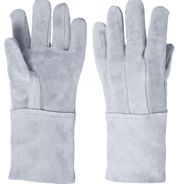 Luva de Raspa com reforço interno em raspa, tanto na palma como também na face palmar dos dedos;